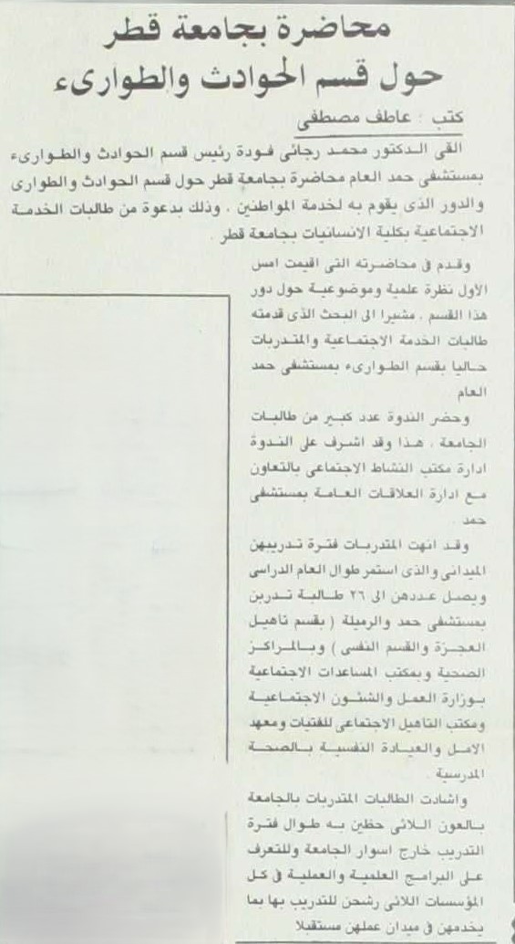 محاضرة بجامعة قطر حول قسم الحوادث و الطوارئ