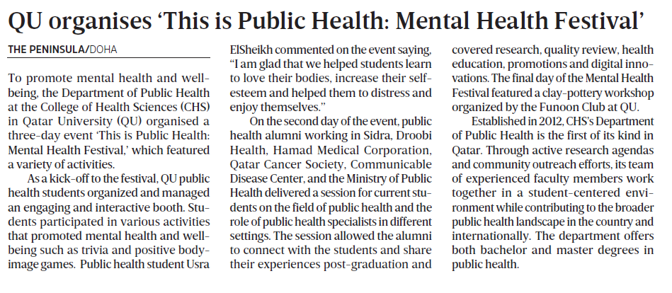 QU organises ‘This is Public Health: Mental Health Festival’
