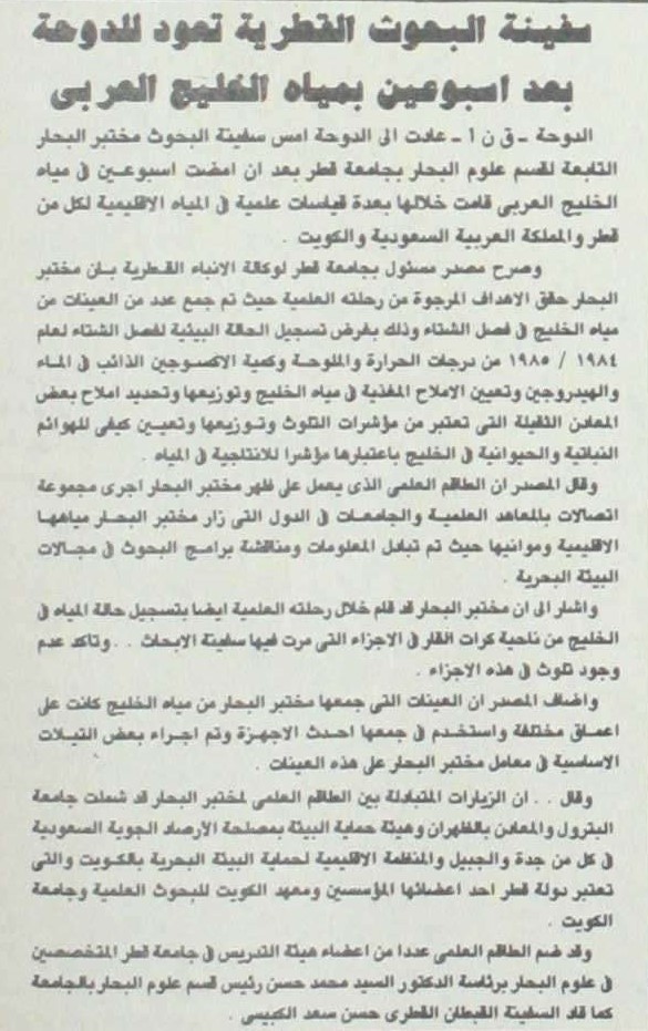 سفينة البحوث القطرية تعود للدوحة بعد اسبوعين بمياه الخليج العربي