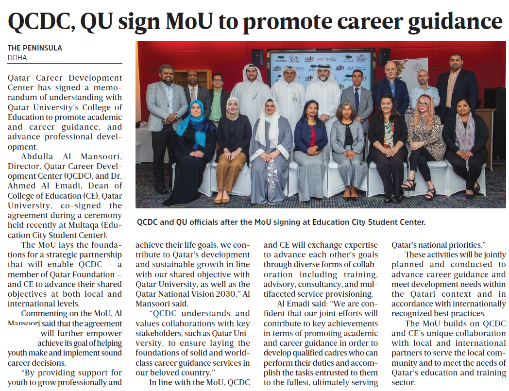QCDC, QU sign MoU to promote career guidance