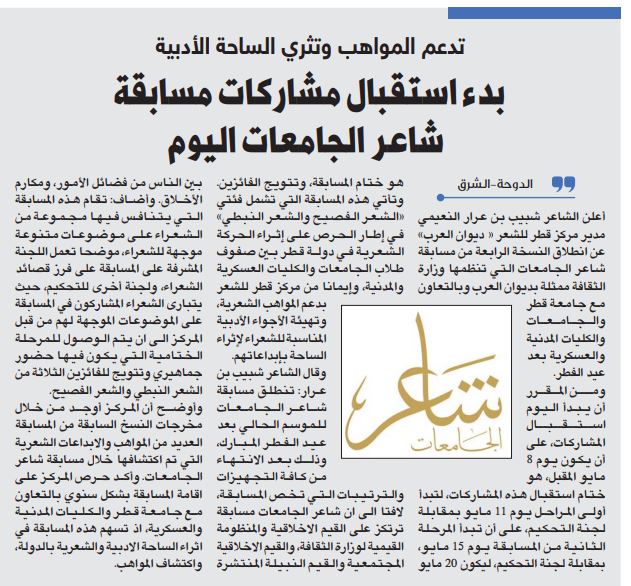 بدء استقبال مشاركات مسابقة شاعر الجامعات