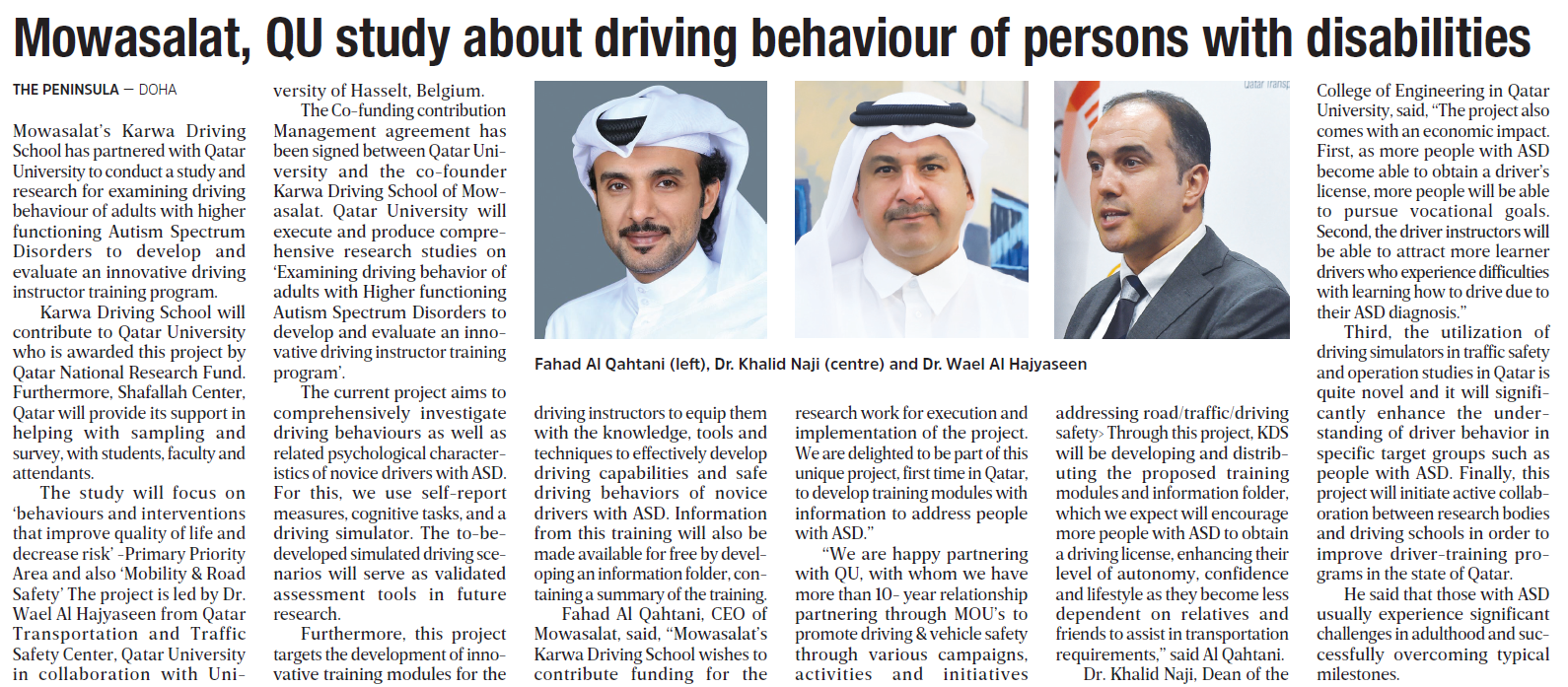 Mowasalat, QU study about driving behaviour of persons with disabilities