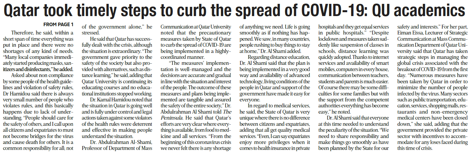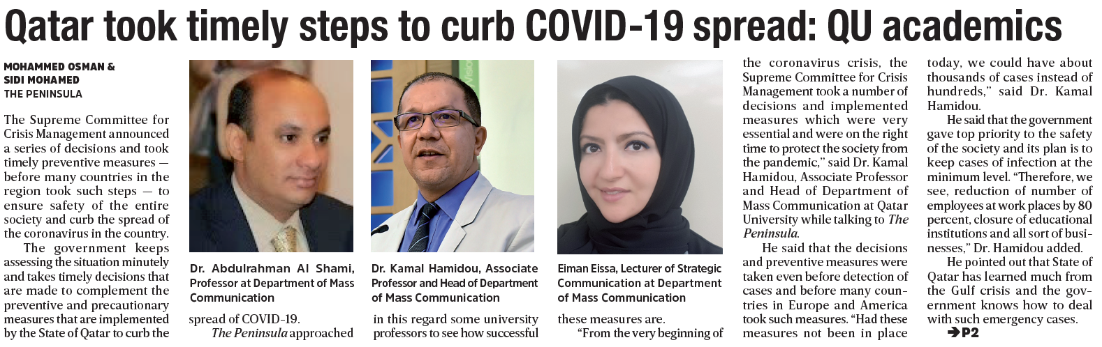 Qatar took timely steps to curb COVID-19 spread: QU academics