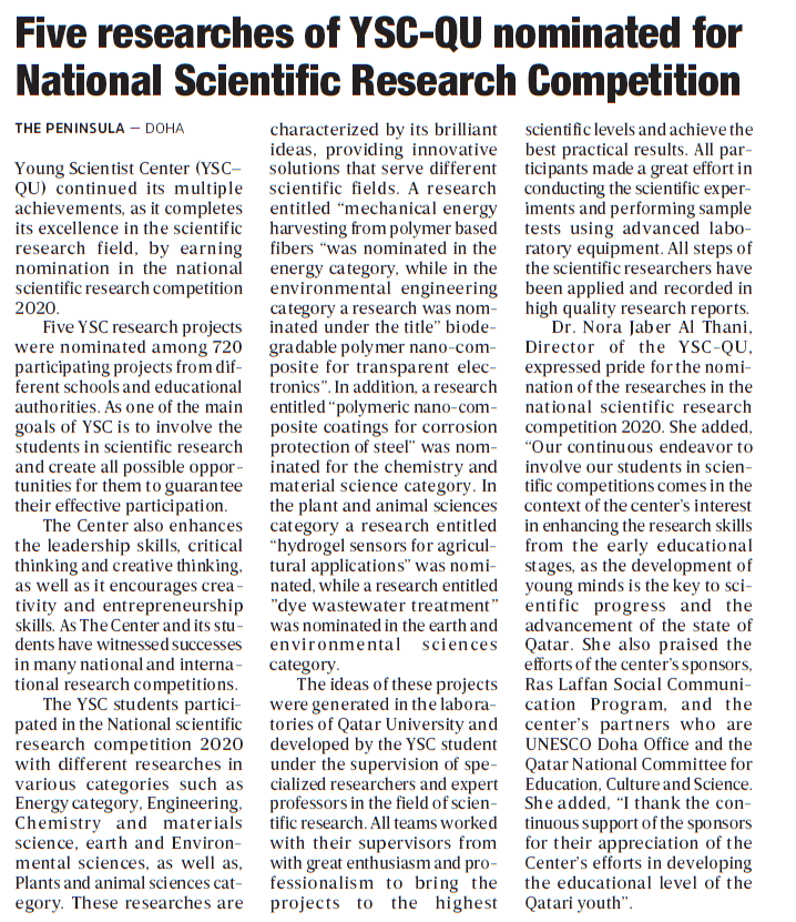 Five researches of YSC-QU nominated for National Scientific Research Competition