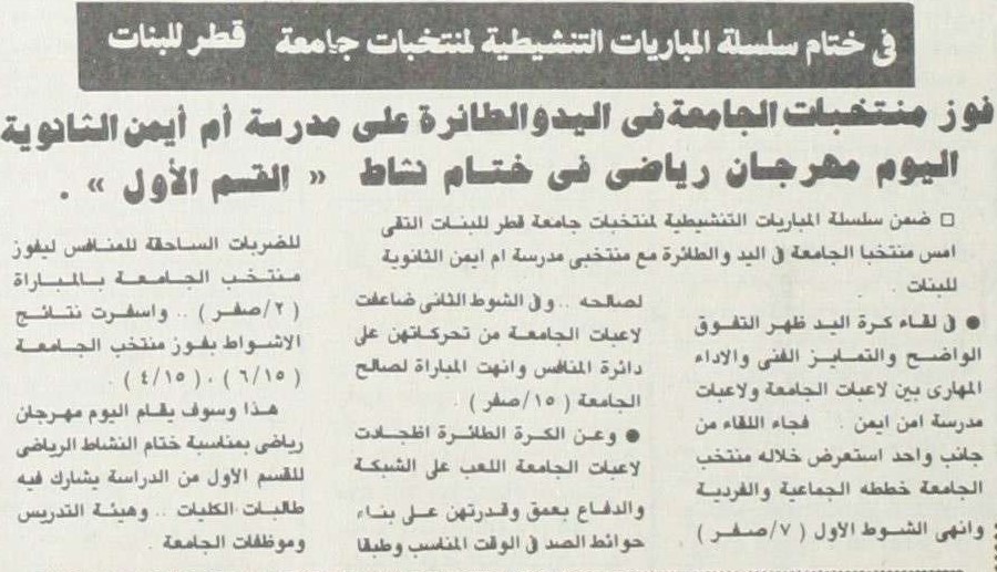 فوز منتخبات الجامعة في اليد و الطائرة على مدرسة أم أيمن الثانوية