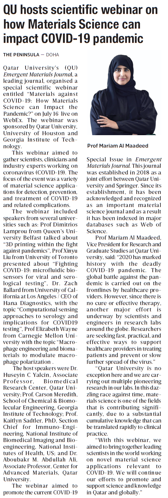 QU hosts scientific webinar on how Materials Science can impact COVID-19 pandemic