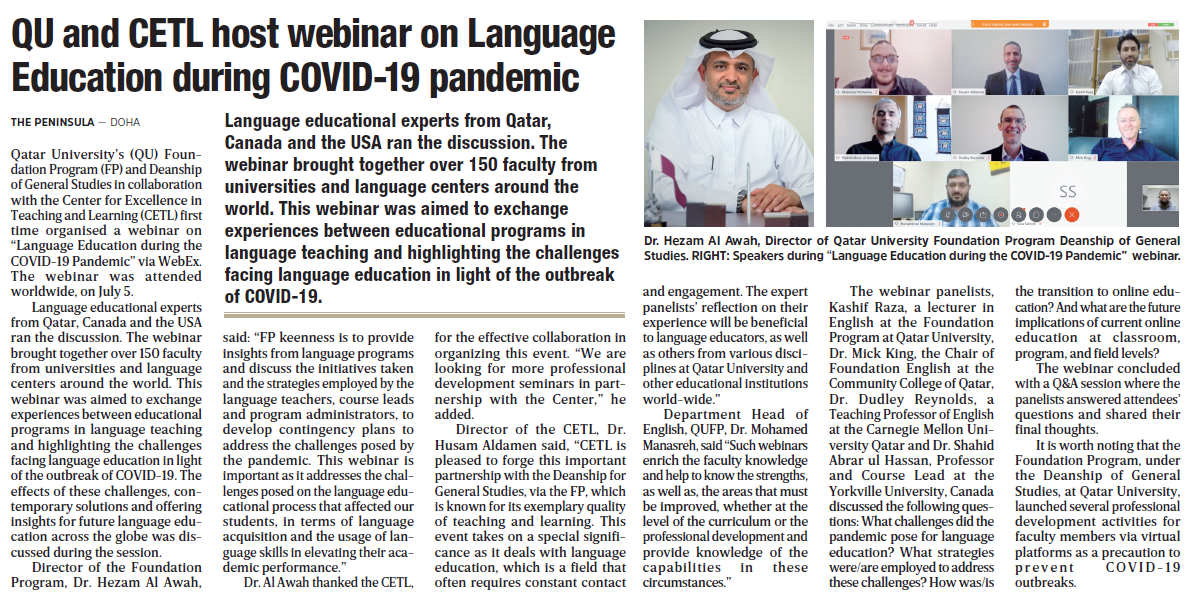 QU and CETL host webinar on Language Education during COVID-19 pandemic