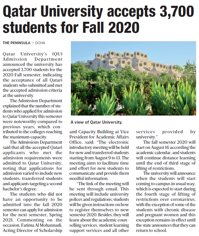 Qatar University accepts 3,700 students for Fall 2020