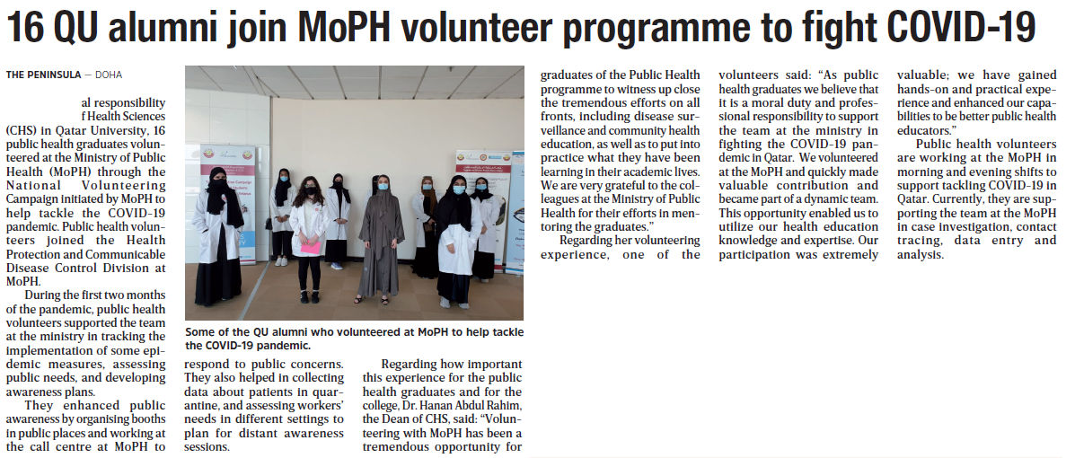 16 QU alumni join MoPH volunteer programme to fight COVID-19
