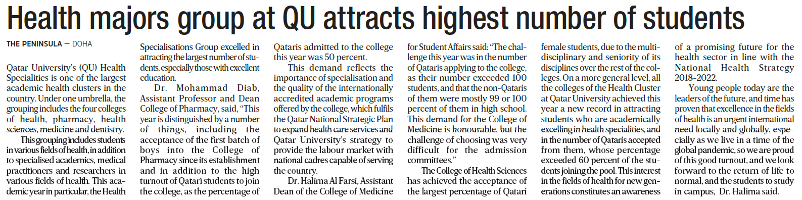 Health majors group at QU attracts highest number of students