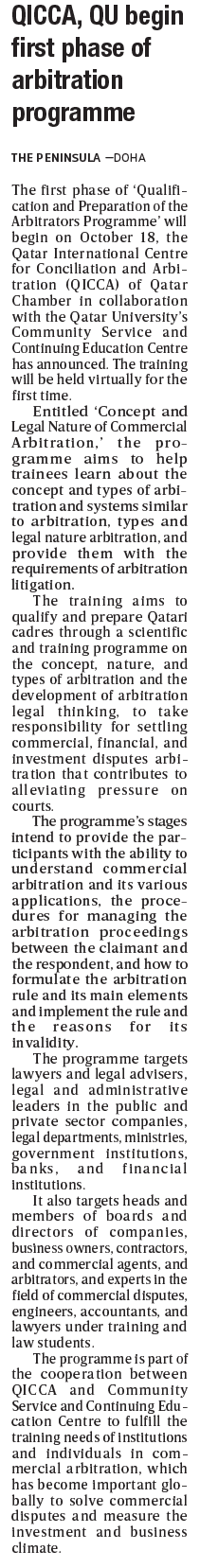 QICCA, QU begin first phase of arbitration programme
