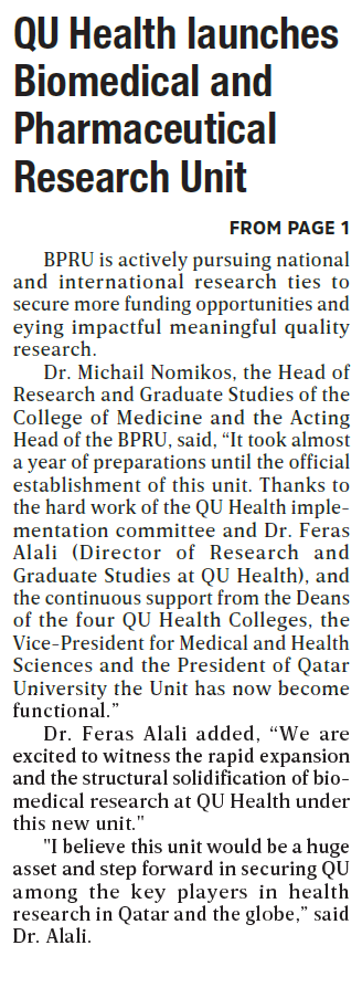 QU Health launches Biomedical, Pharmaceutical Research Unit