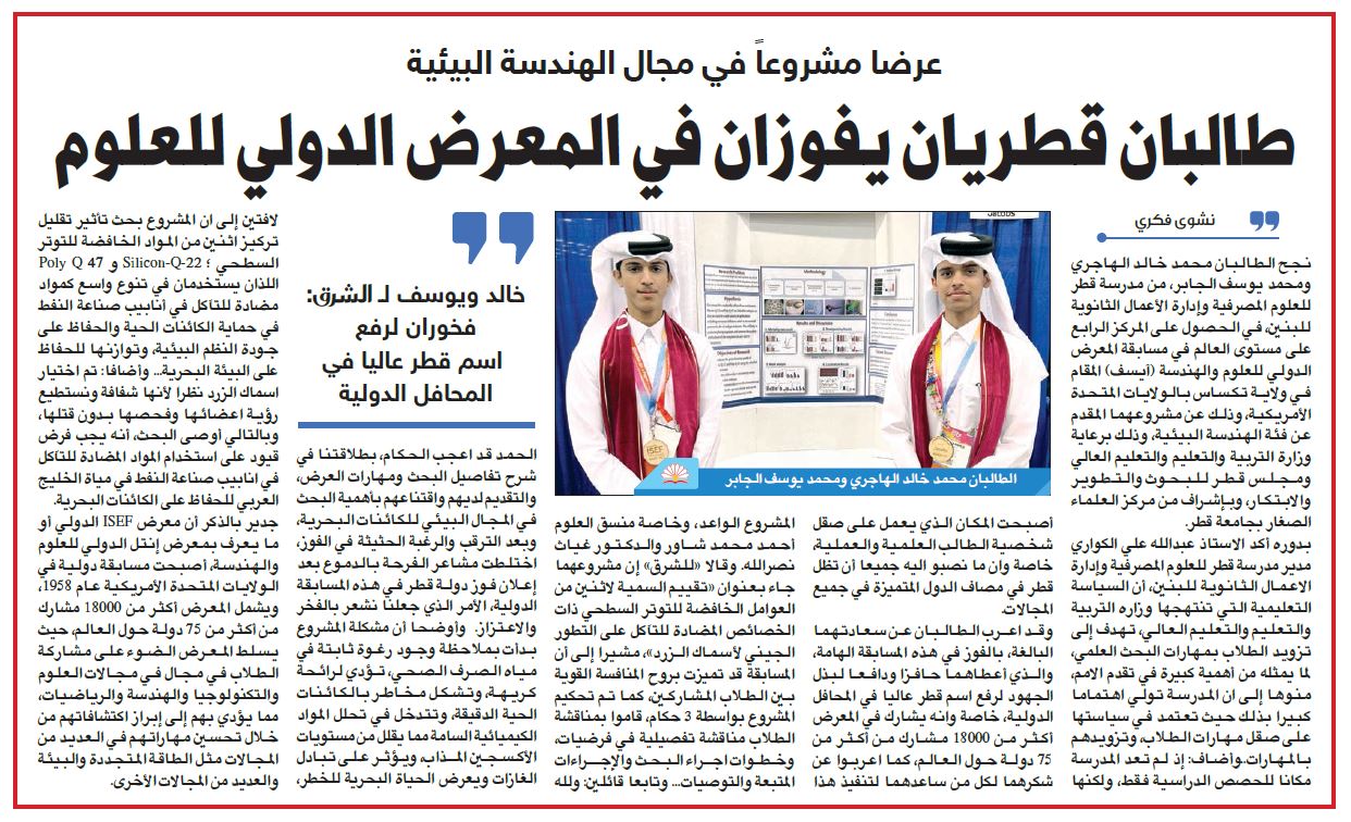 طالبان قطريان يفوزان في المعرض الدولي للعلوم
