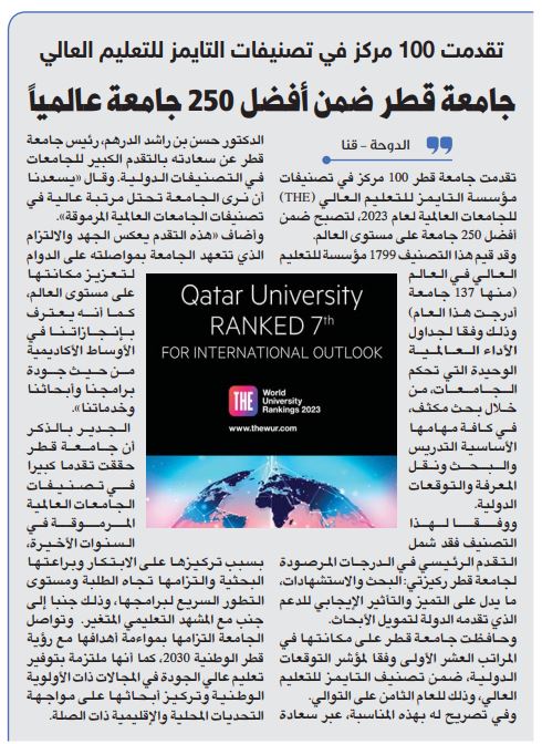 جامعة قطر ضمن أفضل 250 جامعة عالمياً