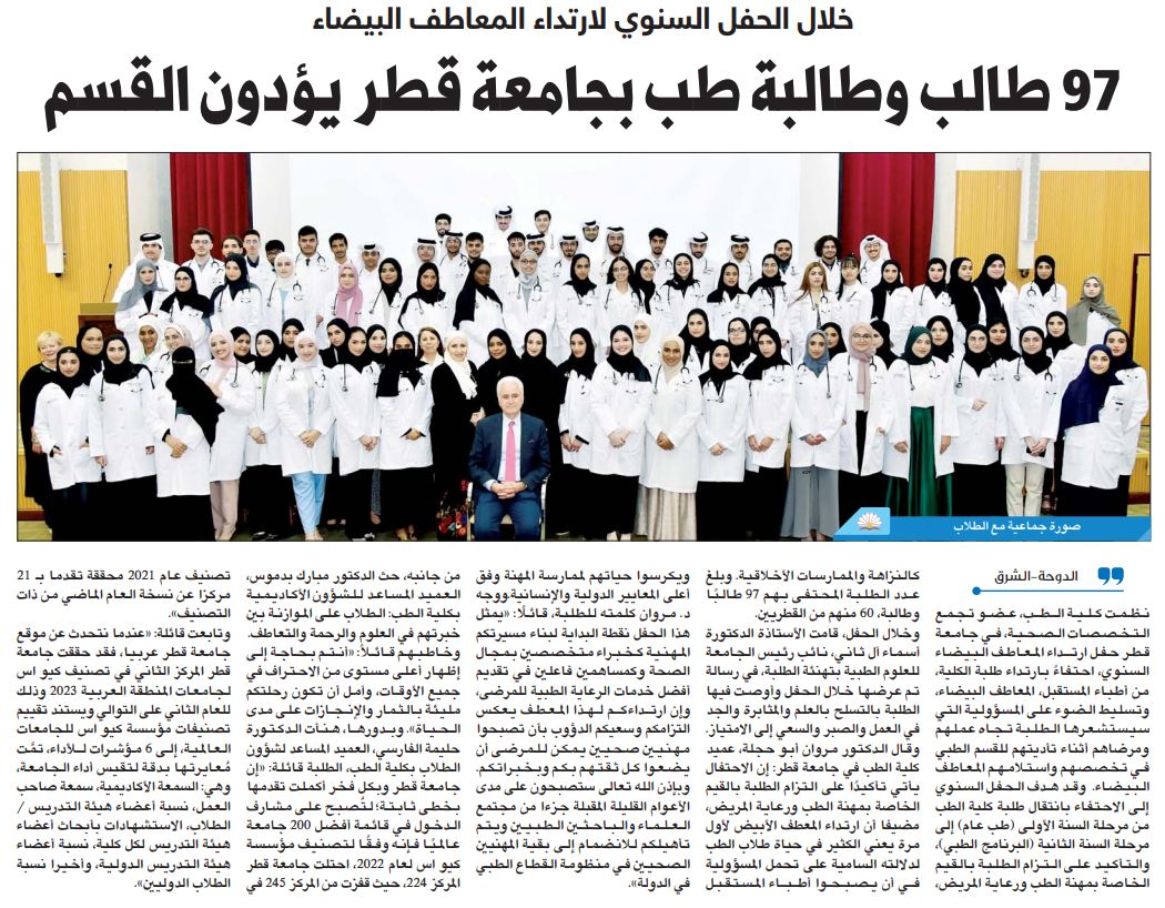 97 طالب وطالبة طب بجامعة قطر يؤدون القسم