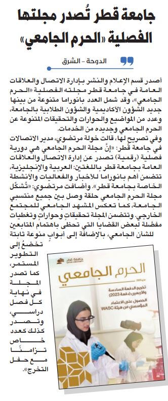((جامعة قطر تصدر مجلتها الفصلية ((الحرم الجامعي