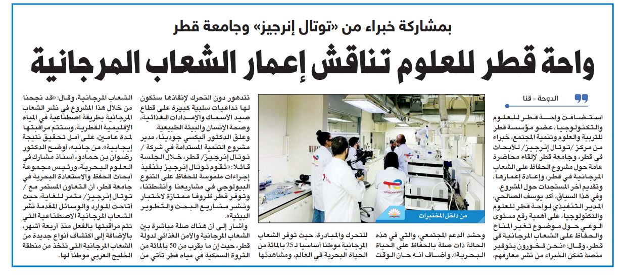 واحة قطر للعلوم تناقش إعمار الشعاب المرجانية