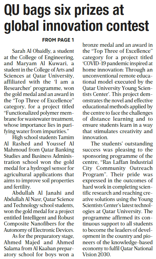 QU bags six prizes at global innovation contest
