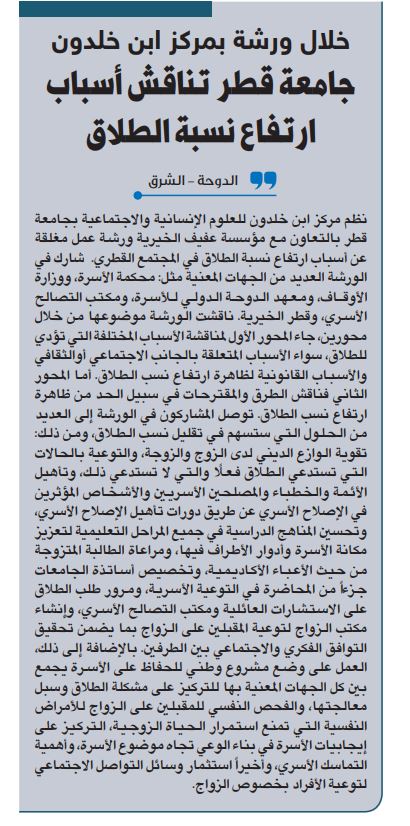 جامعة قطر تناقش أسباب ارتفاع نسبة الطلاق
