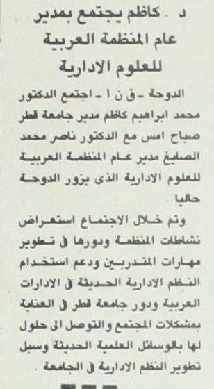 د. كاظم يجتمع بمدير عام المنظمة العربية للعلوم الادارية