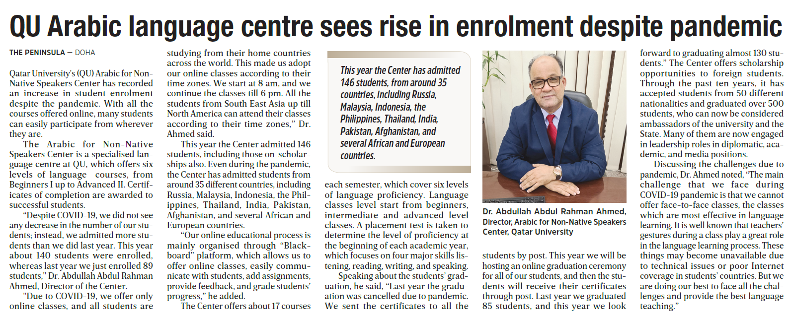 QU Arabic language centre sees rise in enrolment despite pandemic