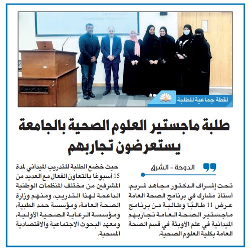 طلبة ماجستير العلوم الصحية بالجامعة يستعرضون تجاربهم