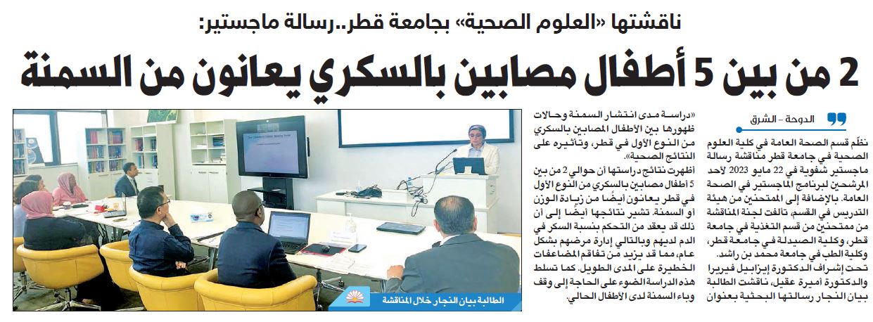 ناقشتها "العلوم الصحية" بجامعة قطر.. رسالة ماجستير: 2 من بين 5 أطفال مصابين بالسكري يعانون من السمنة