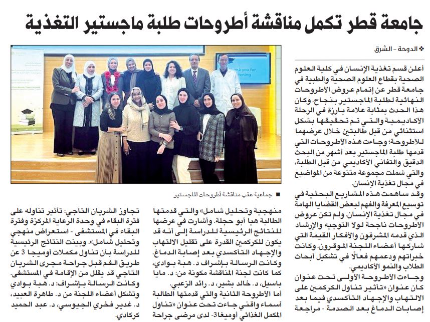 جامعة قطر تكمل مناقشة أطروحات طبة ماجستير التغذية