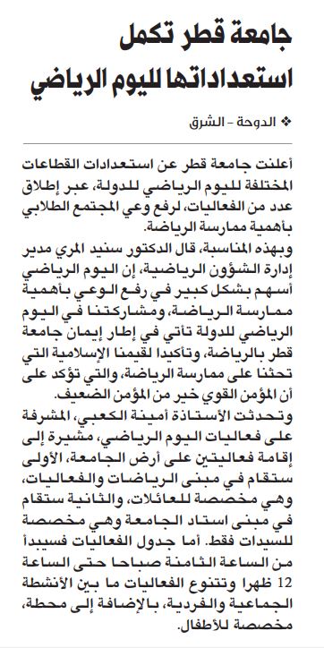 جامعة قطر تكمل استعداداتها لليوم الرياضي