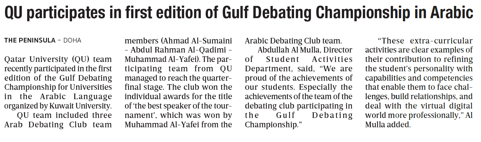 QU participates in first edition of Gulf Debating Championship in Arabic