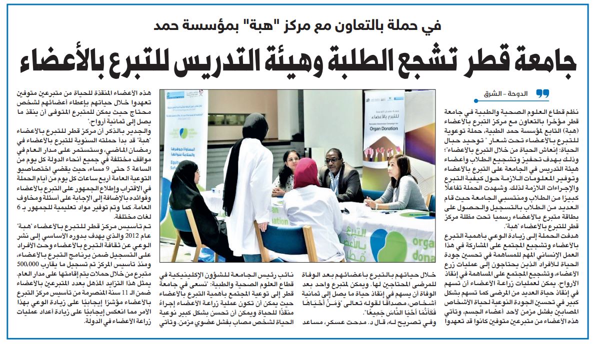 جامعة قطر تشجع الطلبة وهيئة التدريس للتبرع بالأعضاء