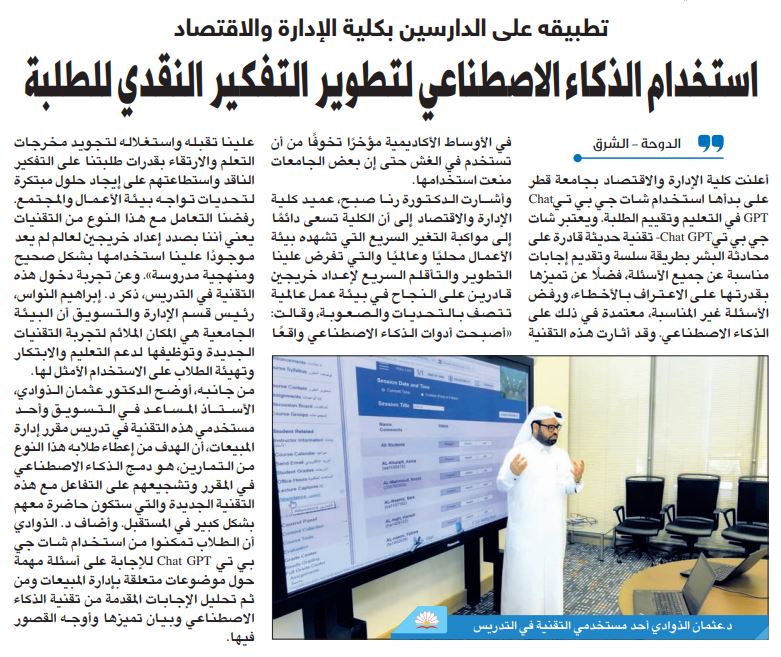 تمكين الطلبة من ابتكار شركات ناشئة في المجال.. جامعة قطر: 350 مشاركًا ببرنامج الابتكار في الذكاء الاصطناعي