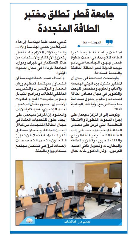 جامعة قطر تطلق مختبر الطاقة المتجددة