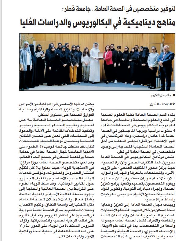 لتوفير متخصصين في الصحة العامة.. جامعة قطر: مناهج ديناميكية في البكالوريوس والدراسات العليا