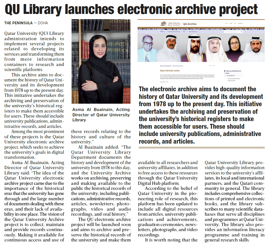 Qatar University Digital Hub is a digital collection operated and maintained by the Qatar University Library and supported by the ITS department