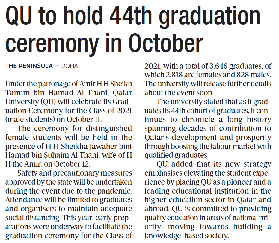 QU to hold 44th graduation ceremony in October
