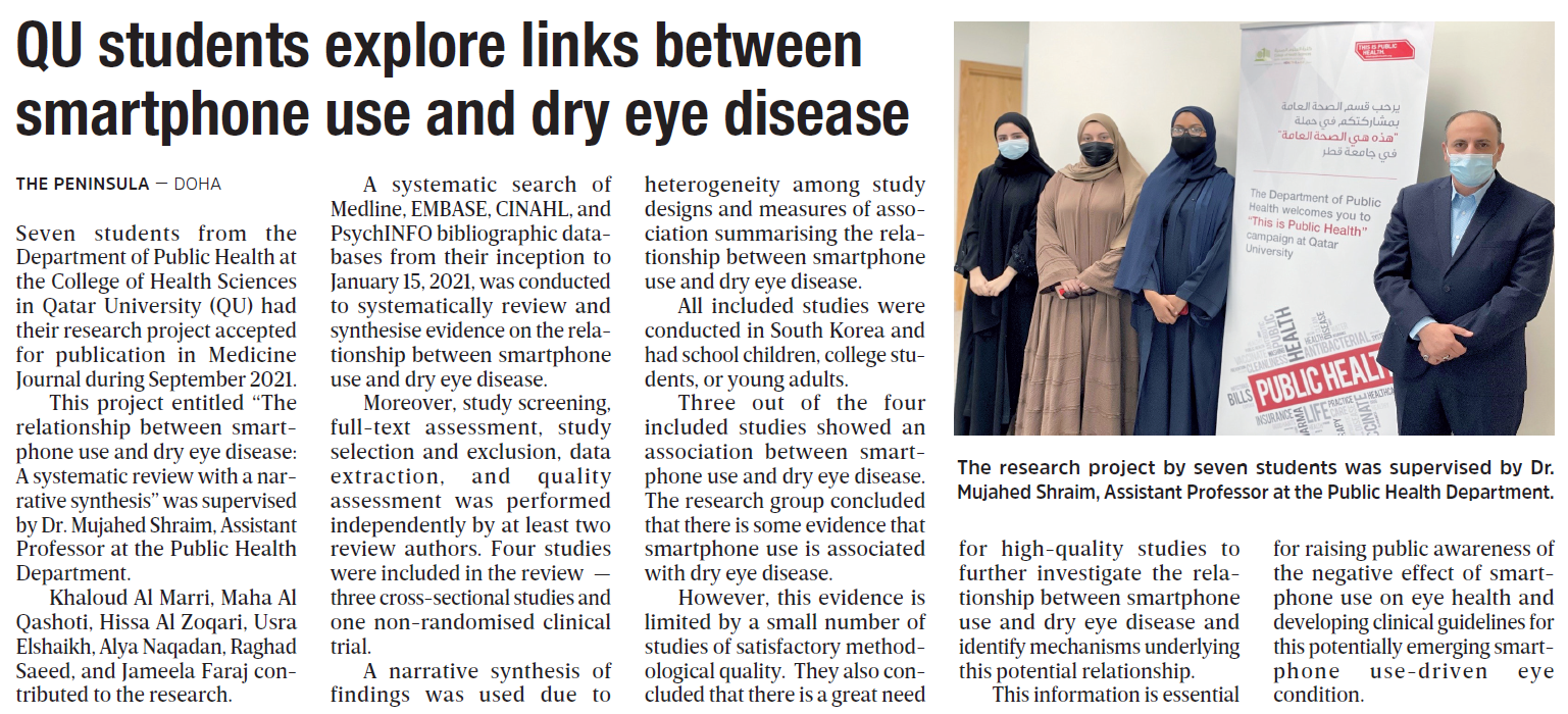 QU students explore links between smartphone use and dry eye disease