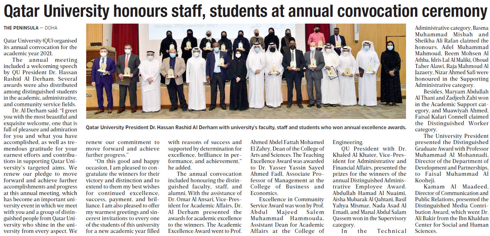 Qatar University honours staff, students at annual convocation ceremony