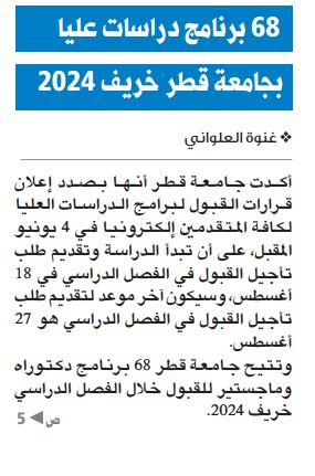 68 برنامج دراسات عليا بجامعة قطر خريف 2024