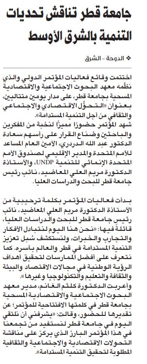 جامعة قطر تناقش تحديات التنمية بالشرق الأوسط