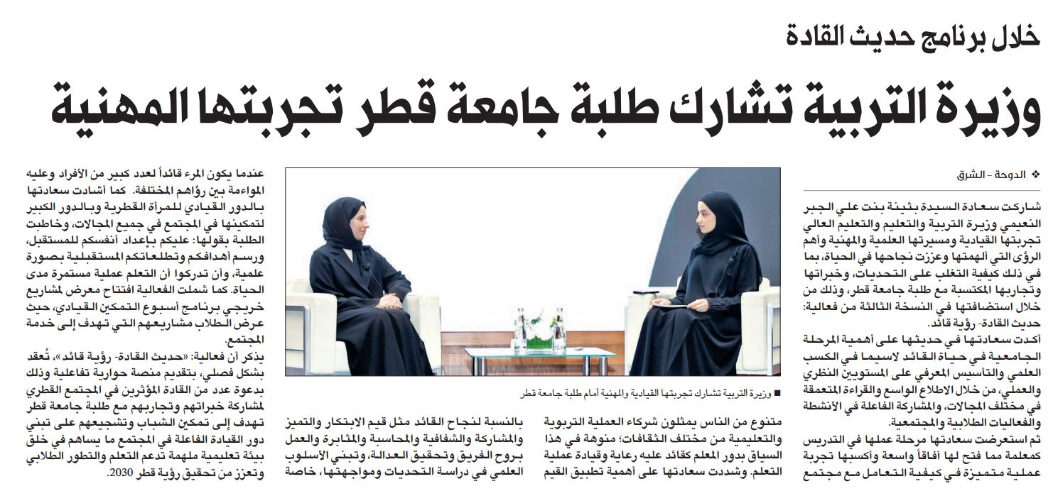 وزير التربية تشارك طلبة جامعة قطر تجربتها المهنية