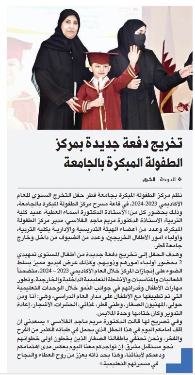 تخريج دفعة جديدة بمركز الطفولة المبكرة بالجامعة