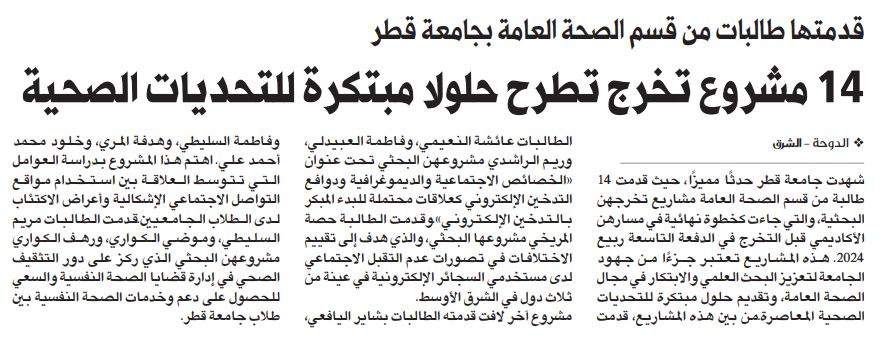 14 مشروع تخرج تطرح حلولا مبتكرة للتحديات الصحية