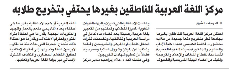 مركز اللغة العربية للناطقين بغيرها يحتفي بتخريج طلابه
