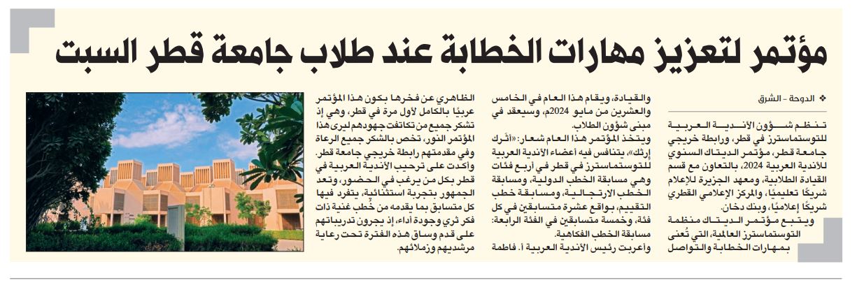 مؤتمر لتعزيز مهارات الخطابة عند طلاب جامعة قطر السبت