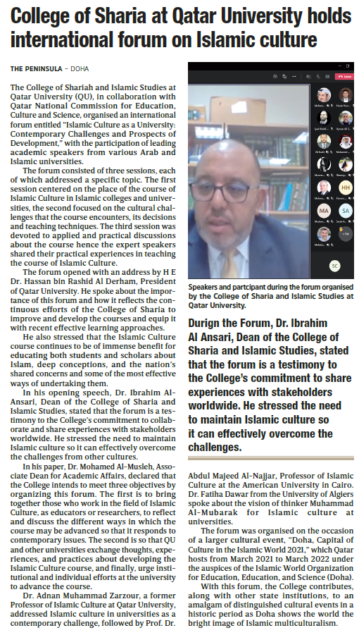 College of Sharia at Qatar University holds international forum on Islamic culture