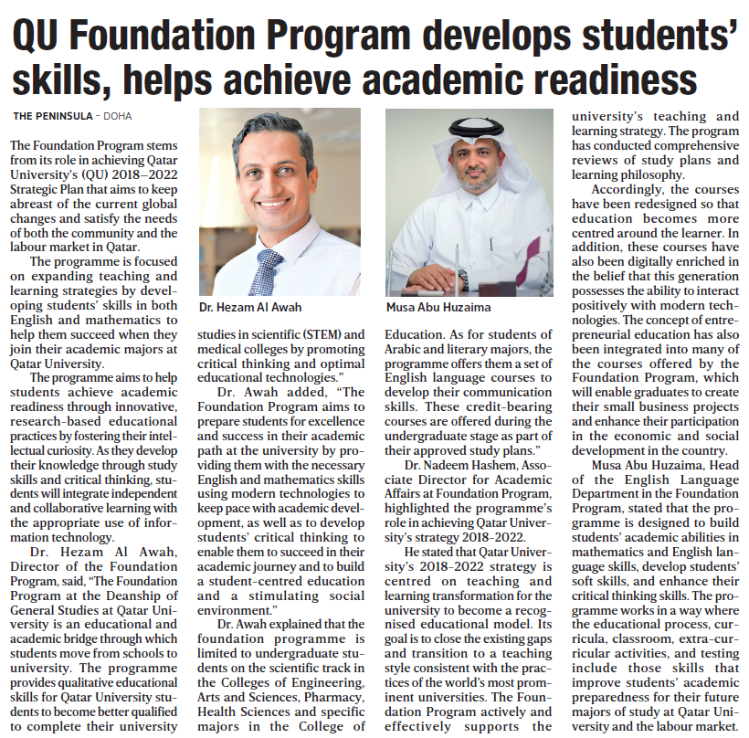 QU Foundation Program develops students’ skills, helps achieve academic readiness