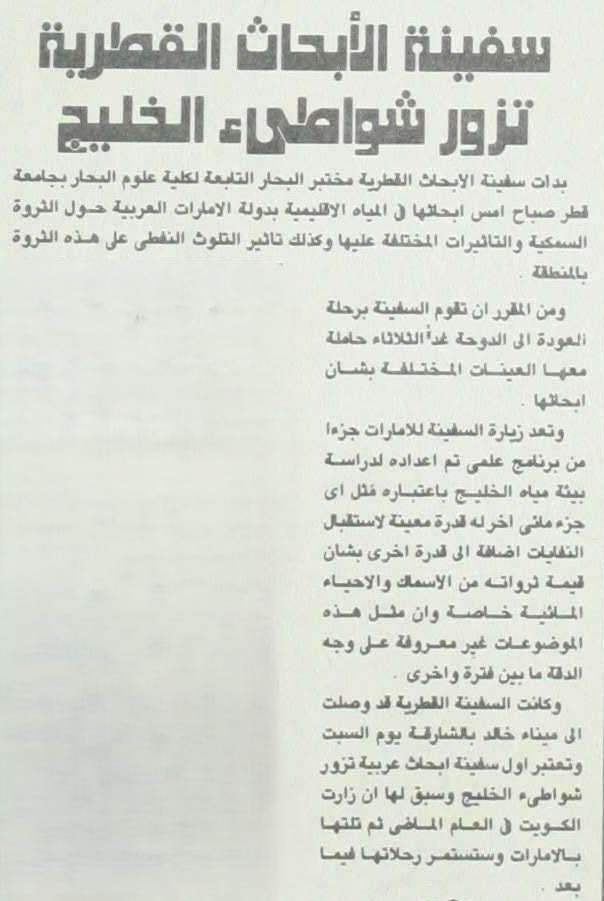 سفينة الأبحاث القطرية تزور شواطئ الخليج