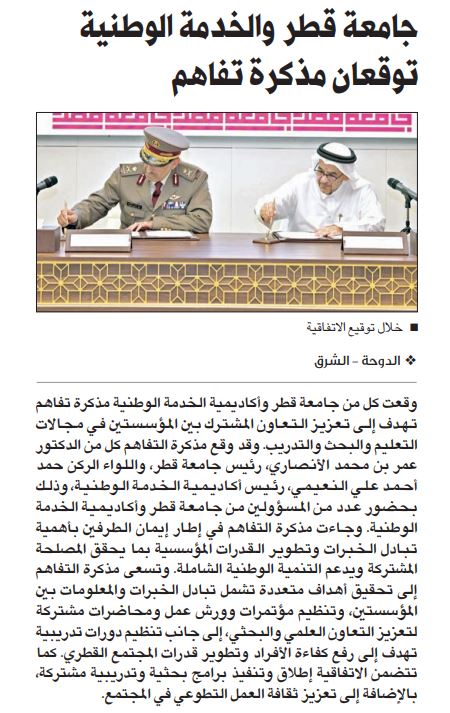 جامعة قطر والخدمة الوطنية توقعان مذكرة تفاهم