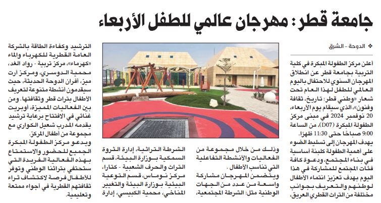 جامعة قطر: مهرجان عالمي للطفل الأربعاء